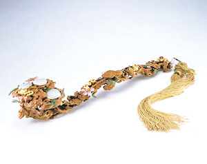 作为一种器物,“如意”因为读音蕴涵吉祥之意,被赋予许多美好的祝愿,成为中国特有的一种“福器”。“如意”古时又称其为“握君”、“执友”,多呈S形,有些像北斗七星形状。魏晋南北朝时期,如意的形制以柄首呈曲手掌式为主流;唐代发展为扁平状,顶端弯折处演变为颈部,柄首为三瓣卷云式造型;明清两代,如意发展到鼎盛时期,因其珍贵的材质和精巧的工艺而广为流行,以灵芝造型为主的如意更被赋予了吉祥驱邪的涵义,成为人们相互馈赠的一种“奢侈品”。