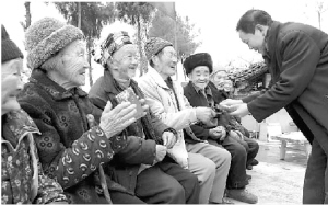 “有多少帮多少!”杨正贵说。肖玉胜一摸底,全村80岁以上老人32名,70岁以上老人100多名。杨正贵拍板:白杨村80岁以上老人,他每月10日发50元养老钱,每年12月调整名单张榜公布。从2007年开始,白杨村80岁以上老人,按时领上了养老钱。
