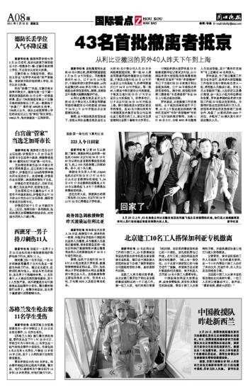 43名首批撤离者抵京