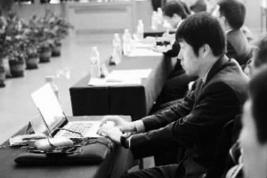 除了上台发言时认真,高洪波听讲的时候也很认真。在听讲的过程中,高洪波总是正襟危坐,面前放着笔记本电脑,眼睛紧盯着前方的PPT教程,一边听一边不停地在电脑上敲打着各种文字和数据。即使在会议间隙,高洪波也很认真。第一天会议中间休息15分钟,高洪波抓紧时间吃了口饼干,然后马上跟讲课的郭家明讨论起关于世界杯的话题。“他问我哪里的比赛和训练数据更为权威,如何在分析时得到最准确的答案。看得出来,他听得很细,而且有自己的想法。”郭家明说。