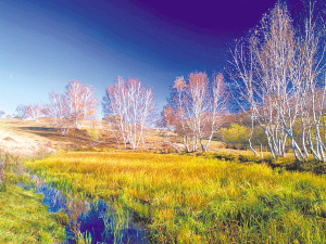 秋天是蓝色的:看!那湛蓝色的天空,从近处延伸到远处,无边无际。