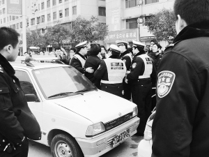 车辆停稳后,该男子不顾交警多次劝说,拒不打开车门下车,直至其亲属赶来并大力猛拍车门,他才下车接受交警询问(如图)。交警依法检查了该男子的驾驶证和行车证后,将其带到七一路派出所进行处理。