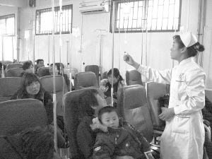 2月28日上午,项城市一家医院的输液室里,不少孩子在家人的陪伴下输液治病。春天乍暖还寒,气温变化大,呼吸道感染患者增多,医护人员提醒家长一定要做好孩子的御寒保暖工作,同时注意室内通风。