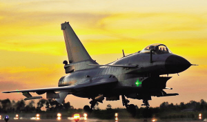 本报综合消息 由八一电影制片厂联合空军政治部和北京市委宣传部等单位共同打造,华夏电影发行有限责任公司全国发行的军事动作大片《歼十出击》,于3月5日下午在空军八一飞行表演队举办了隆重的首映庆典。当天,两架歼十战机为在场媒体和嘉宾表演了低空通场,引得所有人注目欢呼,成为当仁不让的主角。