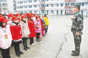 小记者接受军训。 晚报记者 朱海龙 摄