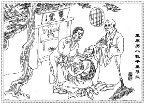 王原继续寻找,有一天走到一个地方,望见有一所寺庙,匾额上写着“梦觉”两个大字。当时天下大雪,王原就跑到庙门口站一站。不久,有个和尚出来,看见王原,就问:“你是什么人?”王原回答:“我是文安县人,为找父亲而来的。”和尚见他可怜,把他引入寺中用饭。和尚知道庙里厨师王珣是文安县人,便跑回去对王珣说:“有个少年是你的同乡,来找他的父亲,或许你知道情况,你去见见他吧!”王珣出来询问之后,才知道是自己20多年未见的儿子王原。父子俩相见抱头痛哭。和尚们见此情景,明白了真相,个个都很受感动。后来父子二人一同回到了家乡,一家几口得以团圆,共享天伦之乐。这真是: