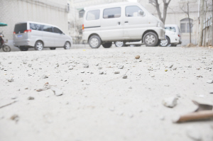 当日,记者来到世纪花园小区,地面上随处可见散落的混凝土、小石子(如图一),停车场里的轿车上也有石子,用手拂去石子和泥灰,车身的凹痕隐约可见,有的甚至连前挡风玻璃都被砸破了(如图二)。记者看到,小区西侧就是“锦都”几座正在建设的高楼,已盖了20层,但只有三四层设有一些简单的防护纱,而世纪花园小区的停车位与“锦都”在建大楼仅一墙之隔。