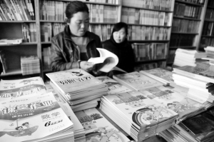 新学期开学后,我市教辅图书市场销售火爆,尤其是来自正规出版渠道的正版图书,因其印刷、装帧精美备受中小学生及家长的青睐。位于周口八一路二小北侧的扬帆书店,图书品类繁多,价位适中,服务优良,一直深受师生的信赖。图为学生家长在选购教辅图书。晚报记者 朱海龙 摄