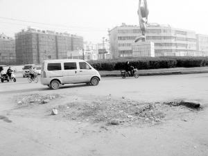 “修路时施工方为了不让车辆通过,在这里堆了好多的土,施工完毕后却一直没有清理,所以就在这儿一直堆放着。”在该路口卖水果的张老汉告诉记者,这一土堆已经有近一年时间了,白天还不太明显,到了夜间,不熟悉路况的过往车辆和行人,没少受它的苦头,仅他知道的车“崴脚”、人栽跟头的事就发生过多起。附近居民也向有关部门反映过多次,可就是不见人前来清理。