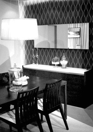 镜面的墙饰运用则更易独辟蹊径,将相同造型的镜面在墙面进行重复排列,不但可以增加室内的采光效果,而且能形成视觉上的开阔感。还可以将镜面这一充满现代感的材质进行从整体到碎末的渐次分解,作为墙面的装饰,加上室内散射光的照射,可达到绝对震撼视觉的效果,犹如水晶瞬间迸裂,化作繁星满天。镜面在运用中比较避讳繁复的室内环境,所以在简洁的居室环境中,并有固定散光光源,将会达到超现实主义的效果。