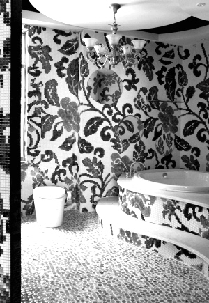 用局部装饰作为整体风格的点睛之处。巧妙地运用马赛克和彩色墙砖的铺设,用以渲染浸透了海风、涛声的浪漫风情。马赛克通常分为陶瓷马赛克、石材马赛克、金属马赛克等,且都以小巧玲珑、色彩斑斓为特点,可以作大型拼图,也可制造渐变效果。小面积的彩色墙砖也有着异曲同工之妙。搭配适当的局部布光,可将色彩丰富的层次表现得淋漓尽致,异国情调的表情非常到位,但与之相搭配的饰品建议取造型简洁、设色素雅为宜。