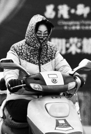受冷空气影响, 昨天,我市迎来大风降温天气。这是记者在街头拍到的人们重拾冬装及大风吹倒路牌的镜头。