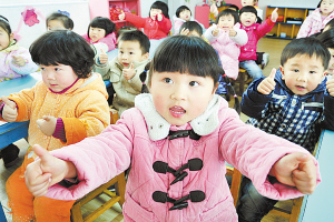 3月21日,湖北省宜昌市夷陵区机关幼儿园的小朋友在练唱儿歌。