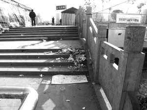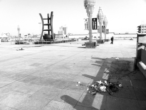 本报讯 天气日渐转暖,作为公共活动场所的周口五一劳动广场,成为不少市民健身、休闲、娱乐的好去处,他们纷纷晚饭后来到这里。可是,不少市民在健身、休闲、娱乐之余,对广场上的环境卫生却没有丝毫的保护意识,随手乱丢垃圾,导致每天清晨的广场总是“满目狼藉”(如图)。