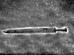 本报讯 3月21日,郸城县出土了一把战国时期的青铜剑(如图)。当地民工在淮郸公路施工时发现了这把剑,并将其上交到该县博物馆。