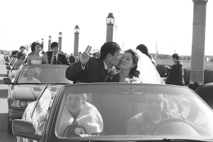 3月24日,新人在大连市星海广场参加农民工集体婚礼。当日,5对农民工新人在大连星海广场举办了一场名为“海誓山盟春天里”的慈善集体婚礼。此次婚礼是2011大连婚庆旅游节暨婚庆博览会的活动之一,参加集体婚礼的5对农民工新人是大连市妇联和市慈善总会在大连普通农民工群体中寻找到的。 新华社发