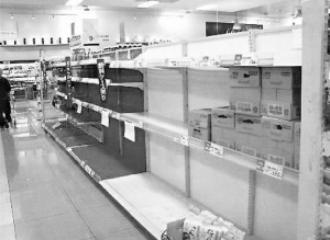 积极跟进的主力军是家庭主妇,一时间超市和24小时便利店的矿泉水销售一空。新宿区一家超市的矿泉水在当地时间下午6时已经全部卖完,货源虽然在积极调配中,但是否能够运到,还是一个未知数。