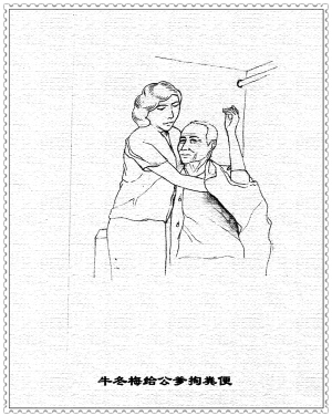 牛冬梅每天给公爹早洗脸晚洗脚,两天一刮胡须,一月一理发,不分昼夜地两小时一翻身,还要轻打按摩100下。老人穿的衣服三天两头换,从没穿过一件脏衣服。老人虽然全瘫在床,但被儿媳打扮得像客人一样,非常干净,非常精神,就是公爹的床下,也每天拖得干干净净。为此,儿媳没睡过一个囫囵觉。