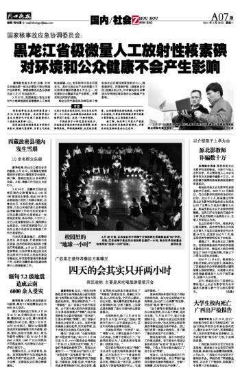 黑龙江省极微量人工放射性核素碘对环境和公众健康不会产生影响