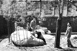 3月28日,有“中国秦岭四宝”美誉的珍稀动物大熊猫、朱鹮、羚牛、金丝猴正式入住西安世界园艺博览会秦岭园的四宝馆。这次入住世园会的共有7只大熊猫、20只朱鹮、5只羚牛和10只金丝猴。未来半年多时间里,它们将一直居住在世园会,供来自世界各地的游客观赏,直至世园会闭幕。图为陕西省珍稀野生动物抢救饲养研究中心两名饲养人员帮助大熊猫熟悉世园会里的“新家”。