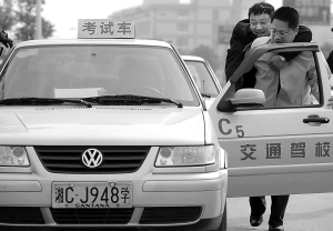 3月30日,刘立新(左)在教练员的帮助下准备进入车辆参加路考。3月30日,位于湖南省湘潭市的湖南省公安厅交警总队机动车驾驶人考试中心科目三湘潭考场迎来了一批特殊的考生,他们有的坐着轮椅,有的拄着拐杖。这些残疾人是湘潭市交通驾校残疾人C5驾驶员培训班的第一批学员。刘立新是这个培训班的班长,对于即将开始的最后一个考试科目,他的脸上写着自信。