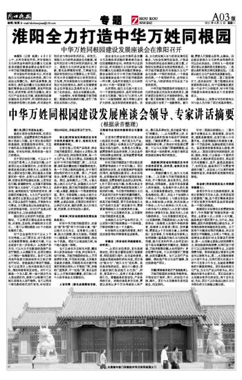 中华万姓同根园建设发展座谈会领导、专家讲话摘要