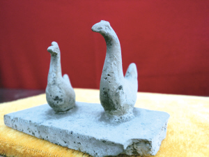 这是一件精美的唐代陶塑艺术品,一对小鸡在互相守望(图一),这一守望就是千年之久。坐落在扶沟县博物馆东邻的“古陶精舍”,便是张先生和藏友们收藏古陶瓷的展示大厅,也是扶沟县古玩商会的办公场所。