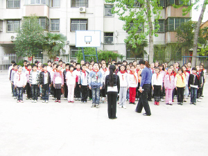 近日,周口榆树园小学接到关于在全区未成年人中开展“童心向党”歌咏活动的通知后,精心选择歌咏曲目,组织学生积极排练。图为该校学生正在紧张排练。