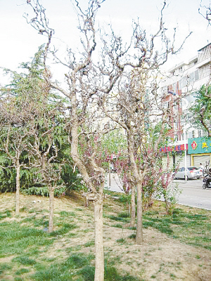 昨日,记者在周口市区滨河公园看到,各种树木或枝叶繁茂或花团锦簇,煞是喜人,但其中几棵树却与这番景象格格不入。它们的树枝竟然还是光秃秃的!附近居民介绍,这几棵树俗称拐枣树,一般4月下旬或5月初才发芽。记者查询相关资料得知,枣树一般暮春时节才发芽,几乎是在所有树木都发芽之后。