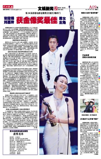 谢霆锋刘嘉玲获金像奖最佳男女主角