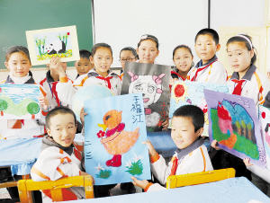 4月19日,黑河市第三小学的学生们展示自己利用废旧物品创作的手工作品。 当日,黑龙江省黑河市第三小学围绕“珍惜地球资源 转变发展方式”这一主题,组织学生开展世界地球日纪念活动。每年的4月22日为世界地球日。新华社发