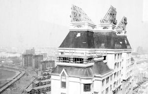 这是4月20日拍摄的长春中海莱茵东郡D6栋28层楼上的违章建筑房屋。被广大网民称为“最夸张违章建筑”的长春中海莱茵东郡D6栋28层楼上的违章建筑房屋,20日在长春净月开发区行政执法局净月中队工作人员的监督下,开始被拆除。新华社发