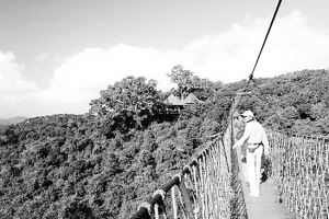 还记得在《非诚勿扰2》中舒淇走过的那条铁索桥吗?它叫“过江桥”,是前往亚龙湾热带天堂森林公园酒店房间的主要通道。走在长168米、高400米的铁索桥上,处处是森林的翠绿,远方是亚龙湾的海景,摇着晃着,感觉很独特。