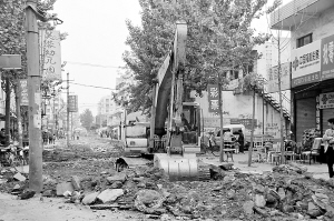 昨日是“五一”假期的最后一天,为了让附近居民早一点出行方便,工人们在假期里仍忙碌在施工现场。据了解,芙蓉路改造工程南起黄河路,北至西大街,全长1926米,红线宽度15米,预计工期为半年。晚报记者 朱海龙 摄