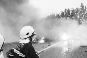 经过一个多小时的紧急扑救,大火终于被扑灭,然而满载几十吨鞭炮的货车已被炸得面目全非,成为一堆废铁。
