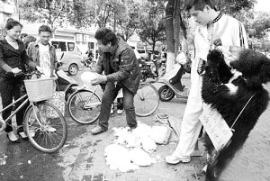 这一招果然吸引了不少的市民,大家围过来观看黑熊表演,同时也不忘跟在一旁的王正法买点菜。在短短20分钟的时间里,首批拉来的100多公斤白菜全部卖完了。