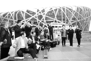 近日,鹿邑县老干部局组织老干部艺术团远赴北京,慰问那里的周口籍务工人员及经商人员。图为鹿邑县老干部艺术团在国家体育场进行慰问演出。