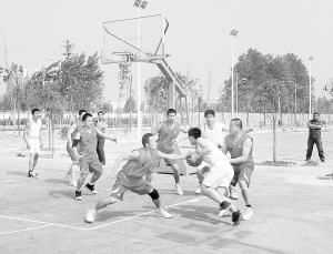 昨日上午,我市首届军民联谊篮球赛在市体育中心室外篮球场拉开战幕(如图)。军分区、武警支队、消防支队、408团、市财政局、市交通局、市教育局、市民政局等8个单位的8支篮球队将进行为期两天的比赛。据了解,这8支篮球队四四对打,取每组的前两名,6日下午他们将角逐前三名。晚报记者 朱东一 摄