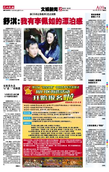 本报综合消息 定于13日上映的爱情片《不再让你孤单》昨日在南京试映,片中舒淇饰演一位从香港来到北京发展的售楼小姐(李佩如),偶遇由刘烨饰演的警察(方镇东),两人上演了一段不离不弃的感人爱情故事。5月4日,舒淇接受了记者的专访,她表示,李佩如这个角色,其实跟她很像,有一种漂泊感。