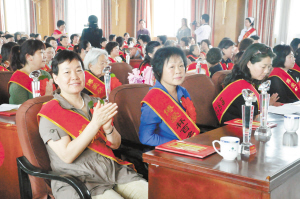 本报讯 5月6日下午,由市妇联、市文明办联合开展的百名优秀母亲评选结果揭晓,我市的100名优秀母亲在周口迎宾馆会议室内,披红戴花受到隆重表彰(如图)。