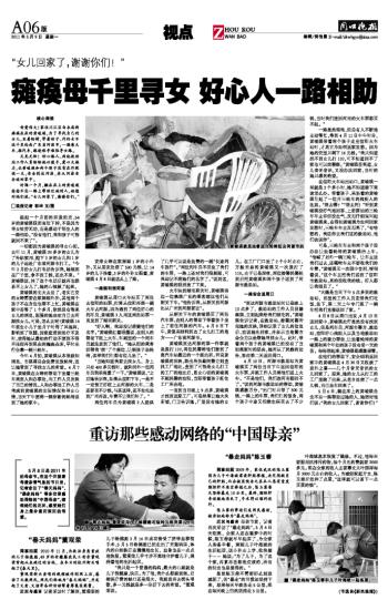 瘫痪母千里寻女 好心人一路相助