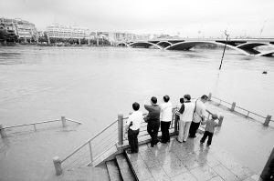 5月8日,市民在漓江边看江水上涨。当日,广西桂林市多个县区遭遇暴雨袭击,截至8日11时,市区降雨量达70毫米,资源、临桂、灵川、灌阳、龙胜等县区降雨量均在短时间内超过50毫米。桂林气象台相继发布了雷电橙色预警和暴雨红色预警。桂林龙胜各族自治县通往资源县的一条公路发生上边坡塌方,造成龙胜温泉通往湖南省武冈市和湖南城步苗族自治县的公路交通中断。新华社发