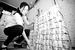 本报综合消息 5月9日上午,泉州公交发展有限公司8名员工,带着5万元的一元纸币,到泉州市区一家银行多个窗口同时排号,要求将钱分批存入8个个人账户(下图)。银行认为这影响到了其他客户办理业务,以“扰乱金融秩序”为由报警。最终,在警方协调下,银行开设专用通道清点零钞,但一天下来,只存了1.3万元。