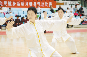 5月13日、14日,我市首次举办健身气功比赛,来自各县市区的百余名选手在市体育场展示了这一健身项目的灵动飘逸,此次比赛的优胜队将代表周口参加本月23日举行的全省健身气功交流展示活动。图为选手在八段锦项目比赛中。