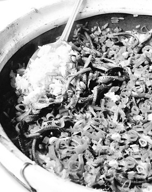 其制法依据各人口味各有不同。黄鳝有切成一段段的,也有撕成一条条的,但都以本地黄鳝和优质大米为原料,佐以姜丝、葱花等调和而成。一揭锅,浓郁的饭香夹杂着鳝香扑面而来。饭粒分明毫不黏稠,细小修长的鳝肉香韧带劲。