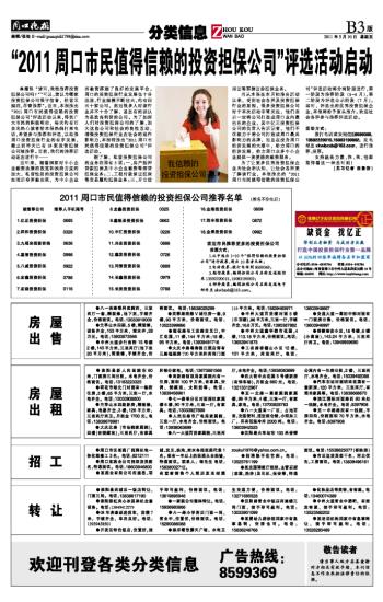 “2011周口市民值得信赖的投资担保公司”评选活动启动