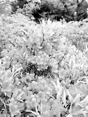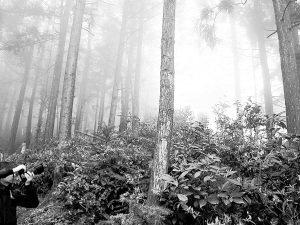 由茨坪镇前往黄洋界的山路上,漫山遍野的粉红色杜鹃花又展现了井冈山的另一种红。杜鹃多为灌木或小乔木,每年自4月中旬开放,至5月中旬才渐渐落去。山花烂漫处,导游李霞又为大家高歌一曲:“若要盼得哟红军来,岭上开遍哟映山红……”映山红是杜鹃的其中一个品种,花色桃红,在茨坪街上就沿路摆着许多映山红盆景。在当地人口中,他们最常说的一句话就是:“五一前后,到我们井冈山来看杜鹃花吧!那时的花是最漂亮的!”