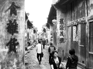 井冈山市茨坪镇,是井冈山市政治、经济、文化中心。初到茨坪,“根据地酒楼”、“老表野菜馆”、“红星楼”、“映山红特产店”等随处可见的“红色”招牌映入眼帘,五角星、火把等形态的装饰门牌也很惹眼,不少店家还身穿“红军服”站在门前招揽顾客,而店里的美食,也均为井冈山特色佳肴。