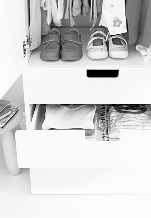 【支招】在原本的隔板组合下,加上抽屉柜,把宝贝的首饰放在抽屉里,让孩子从小就学会自己收拾东西,学会自己给物品分类。