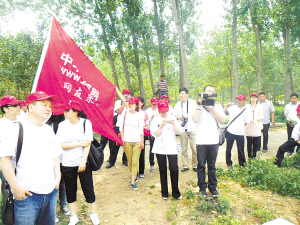 5月26日,43名中华龙都网网友到太康县采风。他们先后在太康县常营镇下湾村参观田间套种模式,在常营镇会城寺村的油桃园了解油桃种植情况,在独塘乡轩庄村参观新农村建设。图为网友采风现场。 晚报记者 张洪涛 摄
